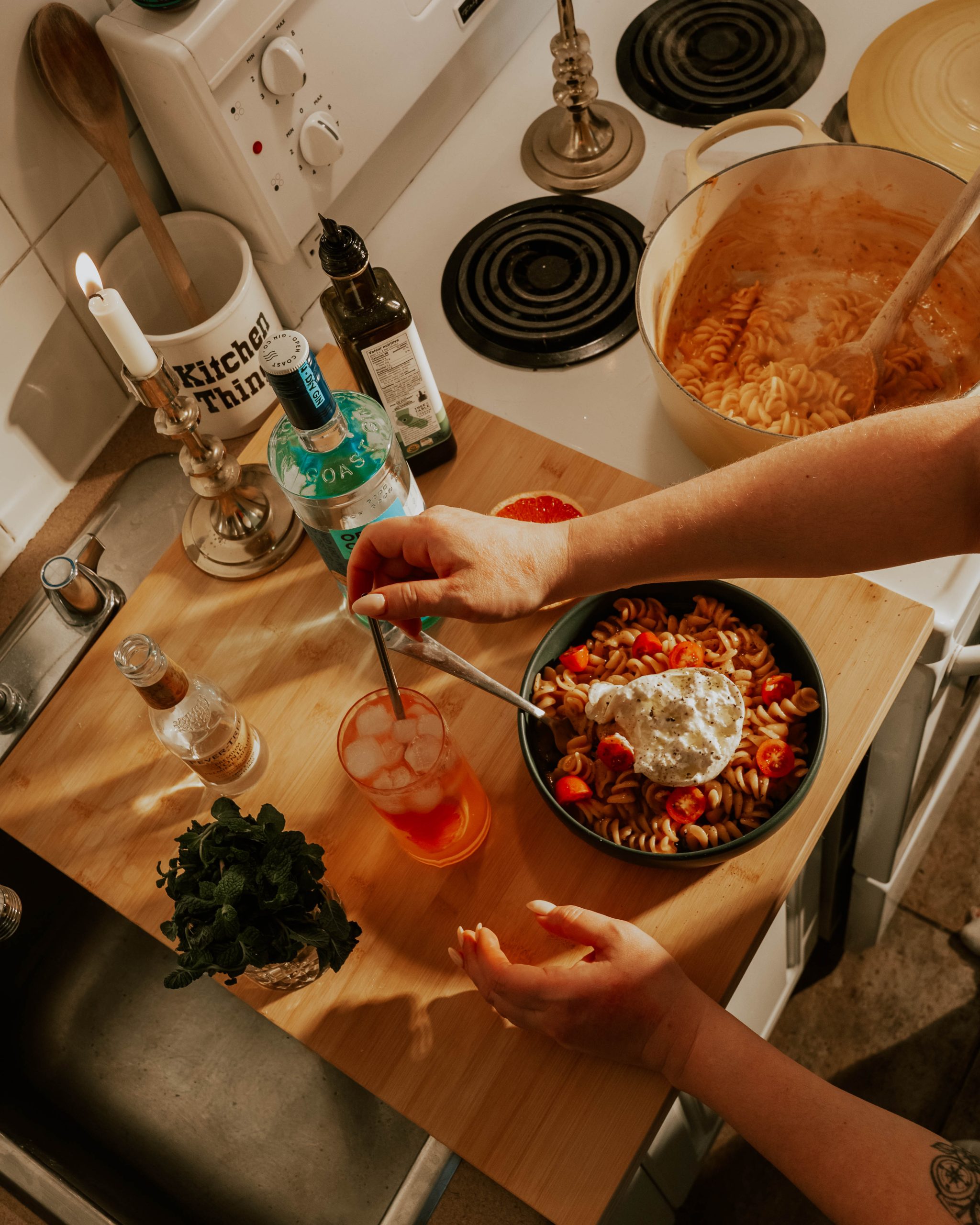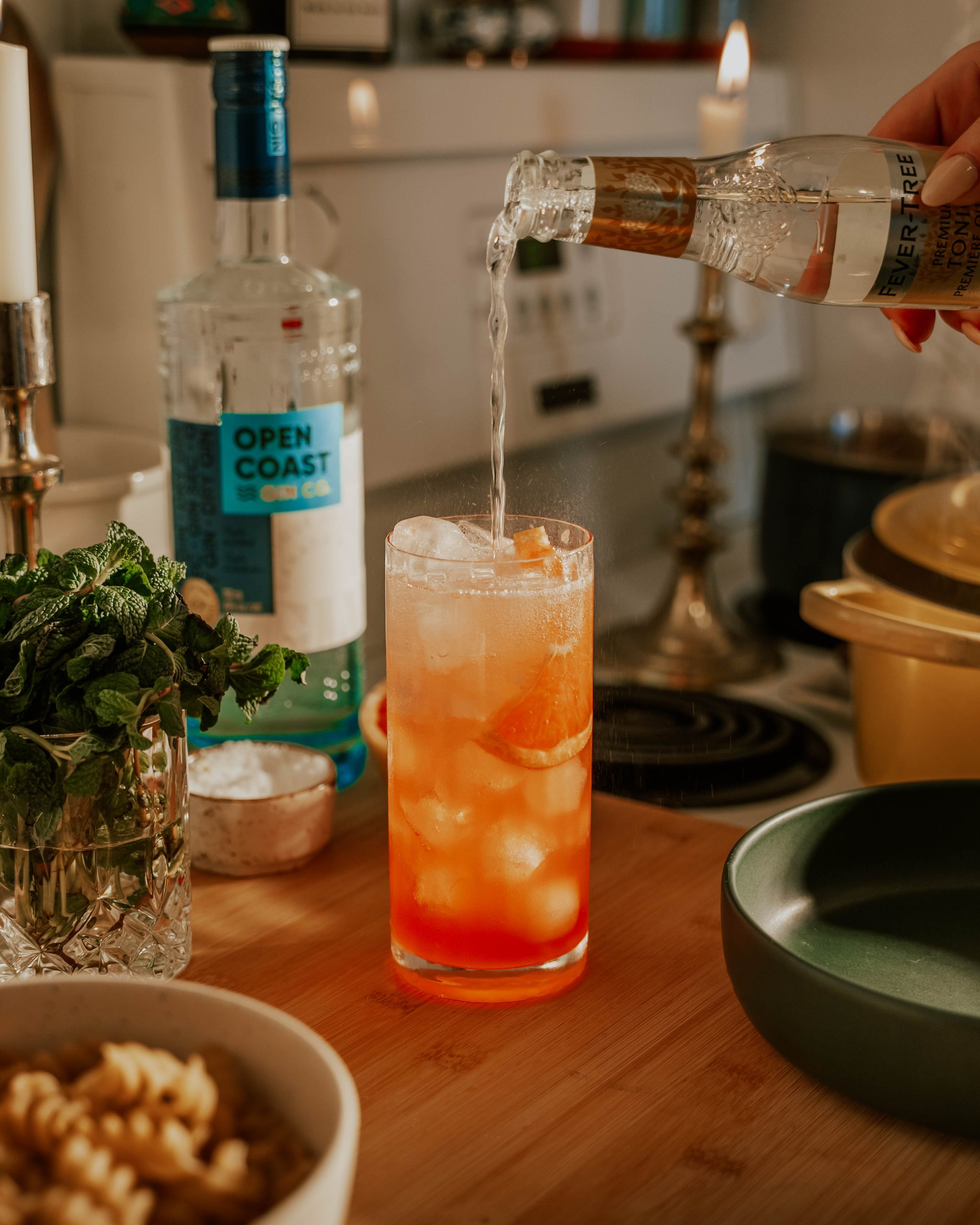 Top with tonic water.
